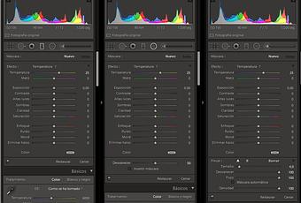 En el módulo Revelar, tenemos justo debajo del histograma la tira de herramientas, donde encontramos los iconos del Filtro Radial (Mayus + Z), Filtro Graduado (M) y el Pincel (K). El filtro radial te permite realizar esta herramienta es un ajuste selectivo sobre una determinada región de la imagen, la diferencia con el filtro graduado esla posibilidad de poder definir la región de aplicación a través de una elipse que podrás ampliar, reducir, rotar, variar su densidad, etc.El Filtro Graduado nos permite aplicar, en una zona específica de la fotografía, ajustes básicos de forma degradada. El Pincel nos permite aplicar los mismos efectos pintando sobre la fotografía.