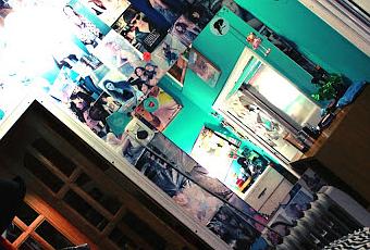 Desde elegir el color de la pintura en el supermercado hasta seleccionar cada una de las fotos que pegue en la pared, intente influir en todo lo posible en la decoracion de mi habitacion. Personalice la puerta del closet ya que no me parecia agradable a la vista.