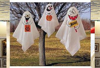 También podemos poner algún fantasma y hacerlo fácilmente. Coge un palo y clávalo en el suelo. En el otro extremo del palo ata un globo y pon una sábana blanca por encima, que llegue hasta el suelo. Pinta unos ojos y una boca y si quieres conseguir un efecto más terrorífico, coloca una linterna o cualquier fuente de luz en el suelo, bajo la sábana.