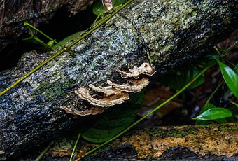 Veo que en los troncos de la selva tropical también se desarrollan hongos como los que vemos en nuestros bosques.