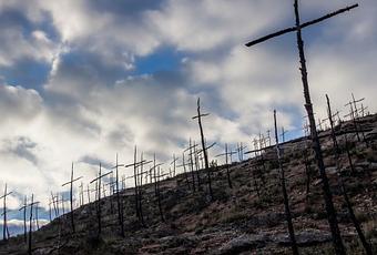 El 26 de julio del 2015 un incendio forestal en Ódena arrasó 1293 hectáreas de bosque. El 26 de julio del 2016, justo un año después, Marc Sellarès, bombero y artista, natural de Ódena, concluía la última de 1293 cruces construidas a partir de los troncos calcinados de aquellos árboles. El Bosc de les Creus, como se llama a esta obra en memoria del bosque, ocupa sólo 4 hectáreas, y su visión resulta desoladora.