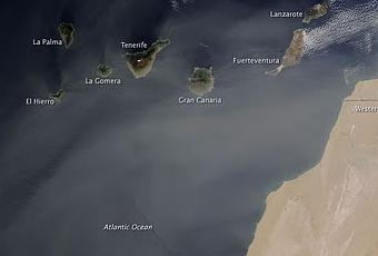 Imagen satélite de polvo del Sáhara sobre las Islas Canarias