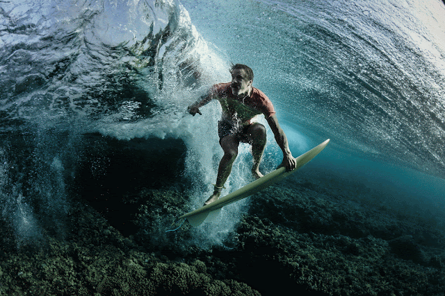 El surfista profesional Donavon Frankenreiter es fotografiado bajo una ola en Fiji. "Siempre estoy buscando nuevos ángulos y perspectivas", comenta el fotógrafo Rodney Bursiel.