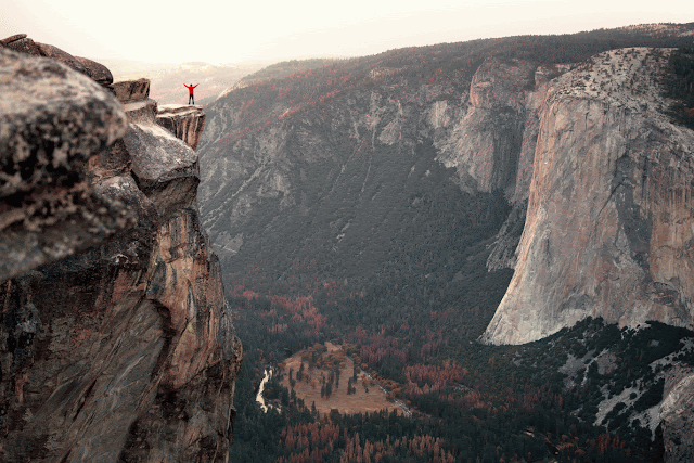 Un excursionista saluda la mañana en el valle de Yosemite, California.