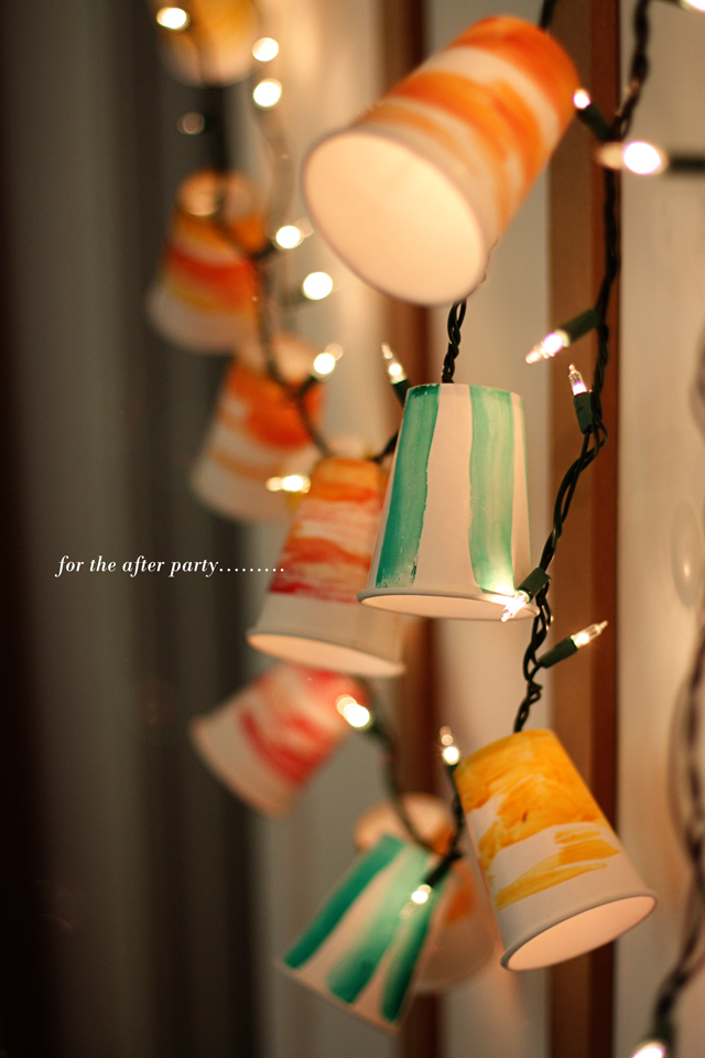 Muchas veces organizas una cena con amigos y esa semana justo la tienes liadisima, estas obtuso de imaginación para la decoración , y claro tú que siempre eres de las que ponen las cosas bonitas allí te encuentras a pocas horas y sin tener nada de nada bueno pues te voy a dar una idea para una decoración muy muy DIY, pinta el menaje tu mismo solo hace falta pinturas e imaginación, en este enlace han hecho hasta una guiranalda con vasos decorados.