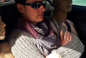 El escritor riojano, Israel Esteban, ha sido sorprendido por la Guardia Civil en un atasco, en uno de los accesos que llevan a Madrid. Israel posa desenfadadamente ante las cámaras de la Benemérita ajeno a la multa que le va a caer. El agente dijo: “agárrate los machos que te va a caer una buena por listo”.