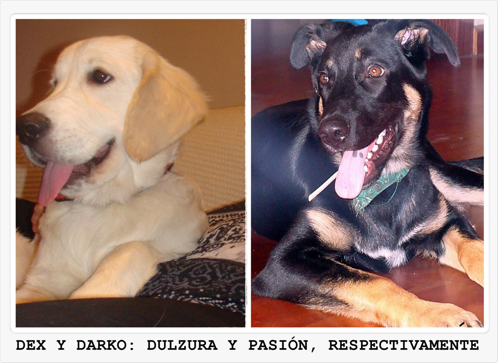 Darko estuvo dos meses en casa durante los que pasó de ser una bolita de peluche asustadiza y juguetona a un cachorro de cuatro meses enorme y negro de ojos castaños y brillantes, con una personalidad que ya apuntaba maneras, las maneras de Darko, su dualidad, cariñoso y tierno a veces, altivo, señorial y distante, otras. No respondía a mis caricias siempre, sólo cuando le apatecía, ni podías comprarle mimos con una chuche apetecible. Así es Darko: inteligente, esbelto, negro, fuerte, todo pasión, líder de manada que vuelve a ser bolita de peluche de vez en cuando, cuando le da la real gana. Medio en broma siempre digo que a Dex le quiero, le adoro, es un dulce, pero de Darko estoy enamorada. Seguimos hablando de perros.