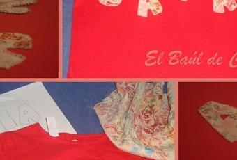 Tenía pensado hacer una muñequita sobre una camiseta lisa del Decathlon, pero entre mi peque y yo aún no tenemos acabado el diseño. De todos modos me llevé de vacaciones dos pares de camistas, un par de trozos de tela, un trozo de fieltro, un trozo de fliselina y algunos hilos de bordar.