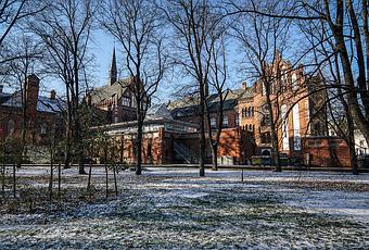 La academia está ubicada en un edificio histórico en Riga, construido originalmente en 1905 como una escuela secundaria alemana. Su arquitectura es de estilo neogótico, y el edificio se destaca por su imponente fachada, decorada con elementos decorativos que evocan la tradición artística.