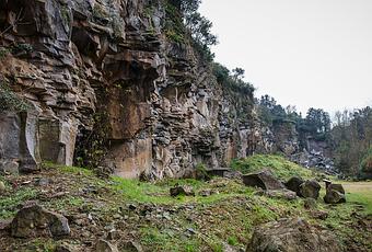 Durante años se extrajeron miles de adoquines de basalto de la cantera del Boscarró.