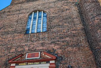 Es un ejemplo destacado del estilo gótico báltico, aunque ha sido renovada y ampliada en varias ocasiones, incorporando elementos de diferentes épocas. Destaca su torre con una aguja de cobre verde, que se alza sobre el casco antiguo y es visible desde muchos puntos de la ciudad. El interior es relativamente austero, reflejando el carácter medieval de la estructura.