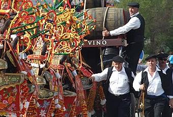 El sábado de la romería entrelazó en el rabo del animal cintas de colores y le pintó los cascos con purpurina. El domingo madrugó, colocó los arreos al animal, le puso un penacho, la lleno de cascabeles: no había un centímetro del cuerpo de la mula que no tuviese un adorno. Cuando llegó la hora de partir, subido en la tartana, en la portada con los ramales en la mano, gritó ufano: