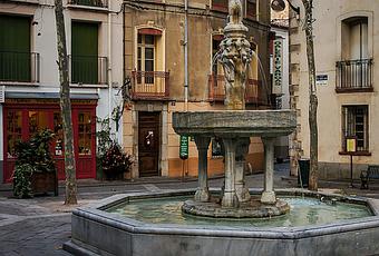 La fuente principal de Céret, construida en 1313 en esta misma plaza. Ha sufrido diversas transformaciones a lo largo del tiempo. En 1479, durante el reinado de Fernando II de Aragón se añadió el león de arriba mirando hacia España. Tras el Tratado de los Pirineos en 1660, Luis XIV giró el león y lo puso mirando a Francia. Tras una ampliación de la plaza, la fuente quedó descentrada. En el siglo XX se trasladó la fuente al nuevo centro de la plaza. Durante el traslado se encontró debajo otra fuente que fue instalada detrás de la iglesia. También se cambió la vasija principal de piedra por otra de mármol más grande. En 2013 se restauró el león y se volvió a poner mirando a España.