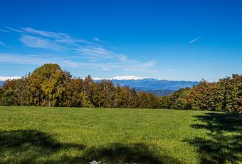 La nieve en las cimas de los Pirineos traza una línea blanca siguiendo la frontera con Francia.