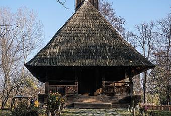 La iglesia ortodoxa dedicada a "San Jerarca Nicolás" de Timișeni, en el condado de Gorj, pertenece a la categoría de monumentos específicos de la antigua arquitectura religiosa de Oltenia. Abandonada y expuesta a la intemperie, en peligro de destrucción, especialmente tras la ampliación de la cantera de carbón de Pinoasa, la iglesia fue salvada y trasladada al museo en 2002, con el consentimiento de los parroquianos y el apoyo económico de las Minas de Rovinari. Aquí fue reconsagrada, recibiendo el santo patrón de "San Demetrio el Nuevo", patrón de Bucarest.