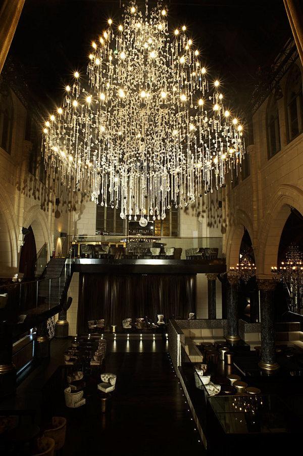 Las lámparas son todas de cristal y debido a la altura del edificio ( os recordamos que antes he dicho que fue una antigua iglesia anglicana) la altura de ellas también es considerable proporcional a su diámetro :