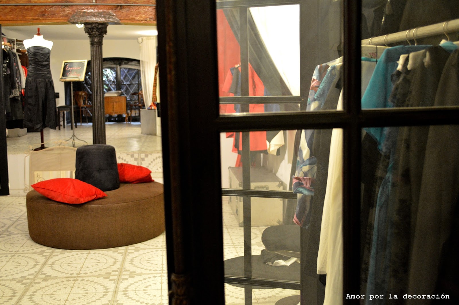 El miércoles, cuando fui a La Modethéque y traspasé su puerta, sentí la sensación de haber entrado en escena, tras abrirse el telón de un teatro... pero no era un teatro lo que se escondía detrás de ese telón rojo de terciopelo, era una tienda coquetísima, con aire bohemio, diseños exclusivos, música francesa sonando sin parar "Oh La la la" y al fondo está Gloria, alma mater de "La Modethéque", con una amplia sonrisa y labios pintados de rojo, a juego con su teatral tienda.