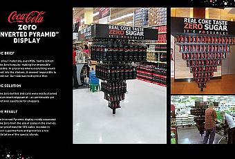 Parece que cada día está más complicado llamar la atención de los clientes de los supermercados, ya no son suficientes las ruedas torcidas del carrito, el olor artificial a pan o jugar con las alturas de los lineales.Los chicos de Leo Burnet Manila tenían claro el brief de Coca-Cola Zero para cambiar esa situación. Al igual que en muchas películas (digo esto porque en la realidad yo nunca vi algo parecido) crearon una pirámide de productos de la marca con la particularidad de que se colocaron a la inversa.