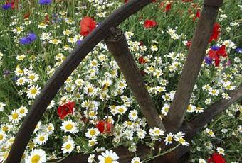 Maraña de pétalos,de amapolas brillantes,margaritas de coloresy sus lilas vacilantes.