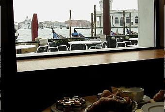 Los ventanales del salón enfilaban el desayuno con el símbolo de la Punta: la Palla d’Oro que enarbola la Fortuna sobre el globo terráqueo que sostienen dos talantes. Una veleta exacerbadamente barroca y veneciana. Y la memoria se enfilaba con el primer café del primer día.