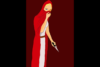 La suerte le sonrió por un momento, pues colgado del cinturón había un pequeño cuchillo, dentro de una funda, que arrancó de un tirón.
