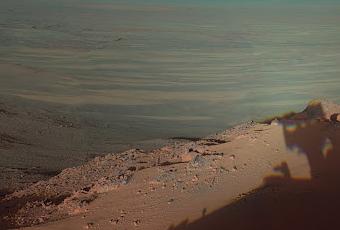 El robot marciano Opportuniy continúa su lenta travesía para recordarnos que Marte es un planeta alucinante. Registrada en el día número 2888 (9 de marzo pasado) desde su llegada al planeta rojo, esta imagen es parte de una toma de 360° del cráter Endeavour, al que arribó en agosto de 2011. Esta formación tiene un diámetro de unos 22 km y en el centro de la imagen se puede apreciar el centro del mismo. La imagen es el resultado del registro de la cámara panorámica del Opportunity, y ha sido compuesta en base a doce imágenes que registraron longitudes de onda de 753, 535 y 432 nanómetros que corresponen al infrarrojo cercano, al verde y al violeta. Algunos aspectos de la imagen se han resaltado para lograr el efecto que apreciamos.