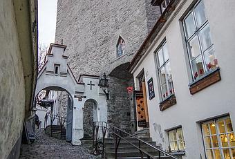 La torre sobre la puerta de la calle Lühike Jalg en Tallin es una de las estructuras defensivas que formaban parte de las fortificaciones medievales de la ciudad. Esta torre, que data del siglo XIV, es un ejemplo típico de la arquitectura defensiva de la época, diseñada para proteger la entrada entre la ciudad baja y la ciudad alta (Toompea), que era una zona de gran importancia estratégica y política.