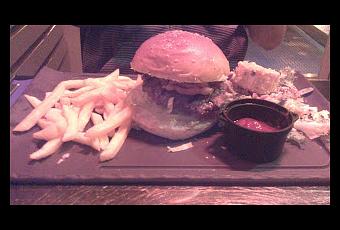 Pedimos un menú que traía un entrante junto con una hamburguesa todo servido en un mismo plato.