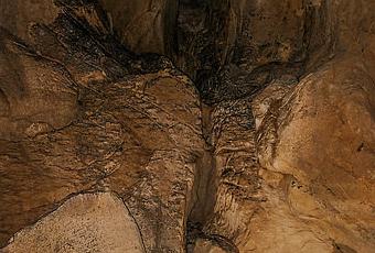 El interior de la primera sala de la cueva iluminado por el flashazo del disparo. Al fondo prosigue la cueva. Por aquí baja el agua que se filtra por la montaña.