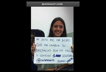 Carlota explicó el acuerdo con su jefe y colgó fotos que lo demostrasen, y funcionó, en apenas unas horas había conseguido los 1000 seguidores, ya tenía el despacho de su jefe asegurado y tan solo un día después ya tenia más de 5500 seguidores, así que el propósito de Carlota ha sido conseguido.