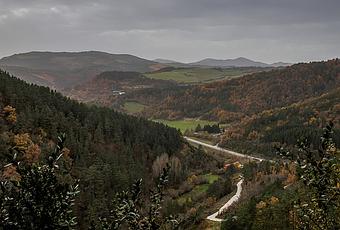 Una vista al sur desde Sarria. El cielo está muy tapado y empiezan a caer las primeras gotas.