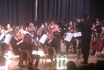 El evento (he usado el palabro, vaya por dios, a la que te descuidas se cuela) fue transcurriendo, padres y abuelos que se levantan y abandonan la sala una vez que su músico ha actuado; maridos que hablan a sus esposas intentando que su voz resuene por encima de la música y caras iluminadas desde abajo por aparatos electrónicos y con aspecto aterrador. Por fin llega la esperada «Orquesta de cámara del conservatorio de Tomelloso» que realiza una magistral interpretación, destacando el virtuosismo de Marisa, a la sazón la mejor violinista del mundo.