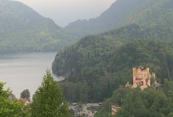 Vista desde una ventana del castillo de Neuschwanstein, con el castillo de Hohenschwangau claramente perfilado sobre el verdor de los montes.Baviera, Alemania(Fotografía de Isabel Martínez Barquero)Cae la lluvia despacio,insistente.No alborota,no repiqueteacon estruendo.Sólo cae, lánguida y nutricia.
