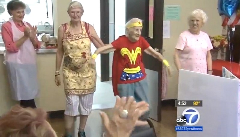 Mary Cotteres una mujer que no hace mucho cumplió 103 años de edad y los celebró en un centro de acogida de mayores en California donde es voluntaria hace 25 años. Sus amigos le regalaron este traje de mujer maravilla porque ha sido una mujer ejemplar que ha dedicado gran parte de su vida a ayudar a los demás convirtiéndola en una heroína de la vida real.-¿Cuál es el secreto de su larga vida? -