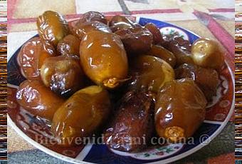 "El Profeta solía romper el ayuno con dátiles frescos antes de ofrecer salat al-maghreb. Si no tenía dátiles frescos, comía dátiles normales, o bebía agua si no había dátiles".