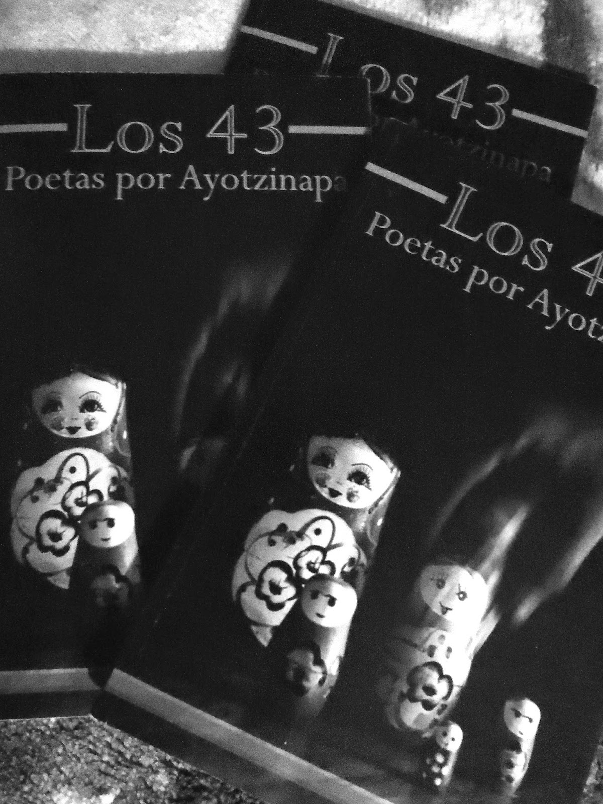 Hablando de acciones, una de ellas se resume en el título Los 43 poetas por Ayotzinapa, una antología que tiene como propósito "unirse a las voces de dolor de las familias de los estudiantes desaparecidos de la Escuela Normal Rural Isidro Burgos", de Ayotzinapa, Guerrero"[1]Un proyecto que fue posible gracias a tantas iniciativas y apoyos de quienes donaron su trabajo, tiempo y esfuerzo. De entrada, se señala: