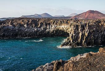 Entre El Golfo y Janubio, en la costa oeste de Lanzarote, hay un curioso lugar llamado Los Hervideros. Se trata de profundas cavidades en la roca volcánica que cuando hay temporal pueden proyectar el agua de las olas por encima de las rocas como si fueran géisers.