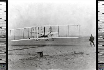 ¿Avión? ¿Se puede llamar avión a un chisme que volaba a 11 km/h y se mantuvo en el aire doce segundos porque ni su inventor podía controlarlo? Y eso, literalmente, empujándolo. Eso no es más que un chisme con alas o unas alas sin chisme. Total todo lo que hicieron fue enchufarle un motor, que tampoco habían inventado ellos, a unos planeadores que estaban más o menos copiados de otros planeadores diseñados por otros chiflados como ellos y que en realidad no son sino unas cometas sin cordel.