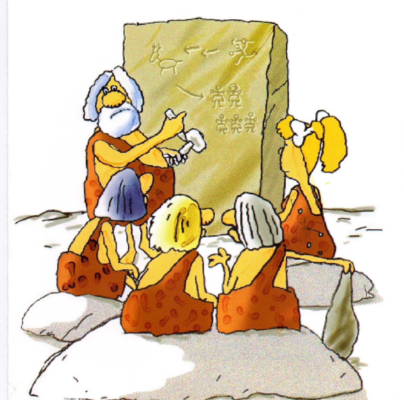 Si, por ejemplo, un buen día llegaba uno de los trogloditas, al que llamaremos Hug (© Gosset), e informaba a nuestro cuentacuentos primigenio de que había “cazado un mamut terciadito”, la hazaña se convertía, en su boca, en una narración de varios minutos, ponderando el valor, la astucia e inteligencia de Hug para cazar un mamut del tamaño de una montaña. Inmediatamente, al bueno de Hug le salían varias novias.Esta especialización en adornar, contar y ,más tarde, inventar historias no era cosa baladí. No nos olvidemos de que, al llegar la noche, no había televisión y ni siquiera tenían ADSL en la caverna, porque no existía Jazztel para darles el coñazo. Después de un duro día de trabajo, de expediciones de caza, de esquivar a cazadores más grandes y haber sobrevivido a ello, el mejor momento de la jornada se producía al llegar la noche, cuando, a la luz y al calor de la hoguera, nuestro cuentacuentos les narraba una y mil veces lo grande y fiero que era el mamut que había cazado Hug.Poco a poco, el storytellerprimitivo se fue dando cuenta de la influencia que podía ejercer sobre la comunidad. A él no le molaba salir a cazar y correr el riesgo de morir devorado o pisoteado. Lo que le gustaba era tumbarse bajo un árbol y darle a la chola, hasta que se le ocurría alguna historia que poder contar esa noche. Así es que pidió audiencia al jefe de la tribu y le dijo: “Cucha primo: cazadores hay muchos; si se despanzurran dos o tres, no pasa nada. Pero ¿y si el despanzurrado fuese yo? Las cenas frente a la hoguera se os harían más aburridas que un domingo sin fútbol”.