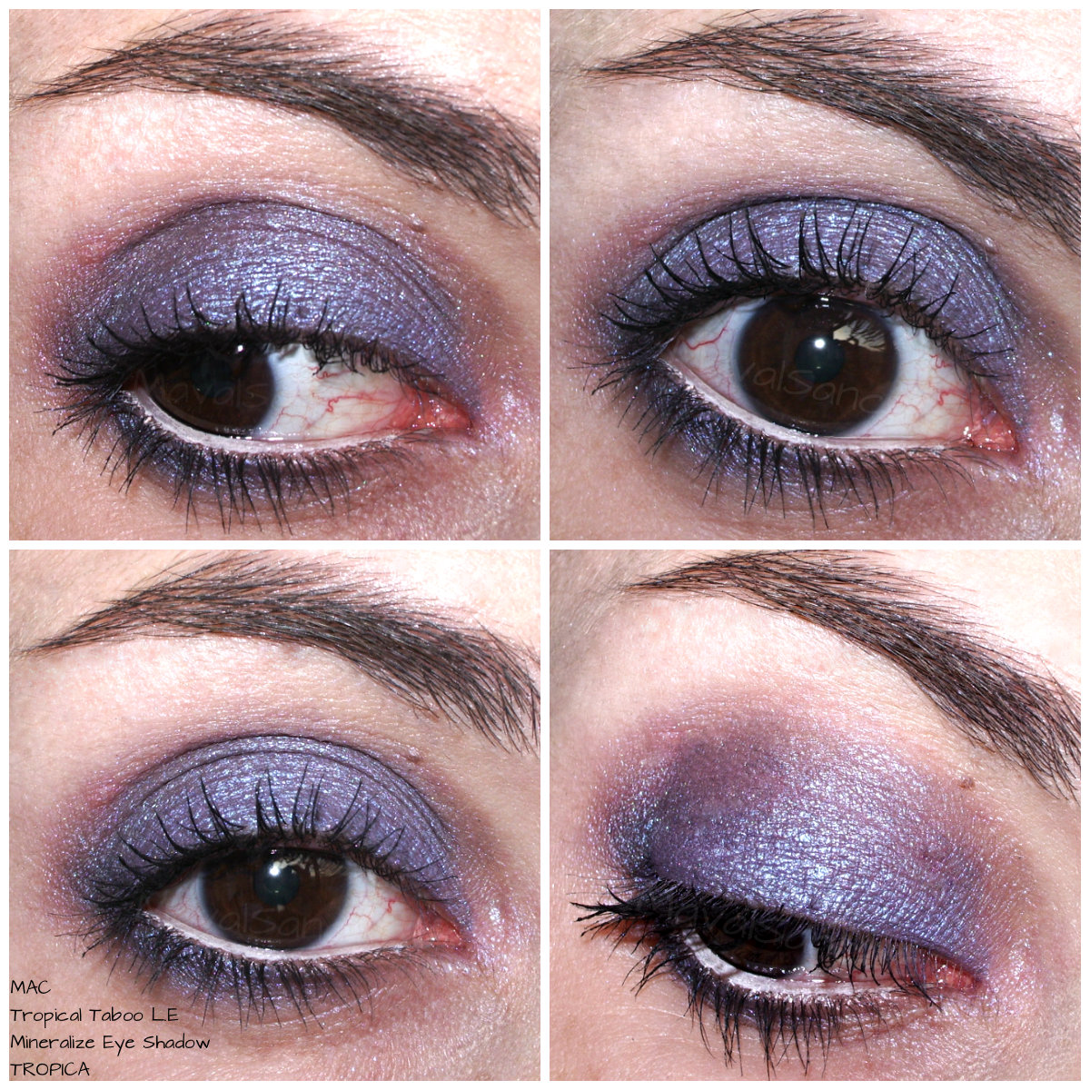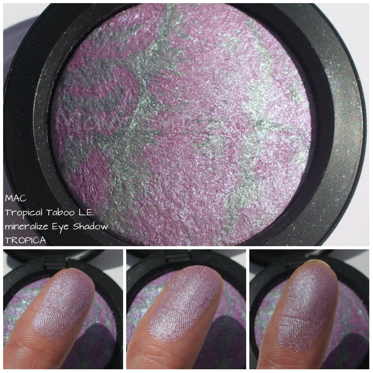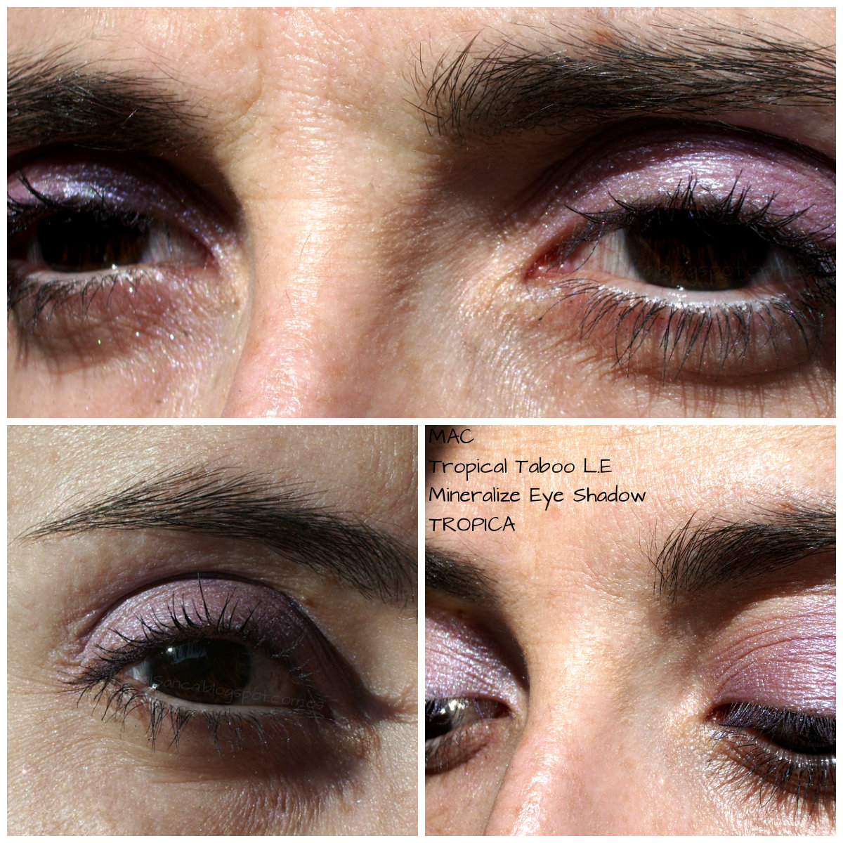 La sombra mineral TROPICA de la Tropical Taboo es una sombra lila iridiscente con destellos en colores morados y azules. El acabado una vez aplicada es perlado.Como cualquier sombra mineral de MAC el efecto conseguido depende de la cantidad que apliques y de cómo se aplique la sombra.