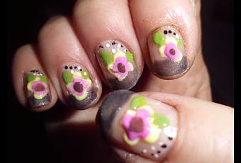 Unas flores en relieve hechas con acrilicos en polvo.