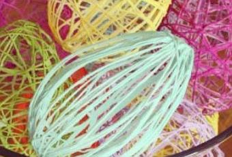 - Al día siguiente ya seco, pinchad el globo y veréis como se va despegando del hilo por sí solo y os quedan ¡los bonitos huevos de Pascua hecho con hilos de colores!