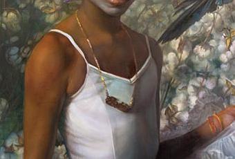 Margaret Bowland (1953) es una interesante pintora estadounidense nacida en Carolina del Norte y que ahora vive y trabaja como profesora de pintura en Nueva York. En sus obras, oleos sobre tela de lino, las figuras de niñas y mujeres con la cara pintada, con ropajes sedosos y desnudos son la constante. Podéis ver más trabajos en su página.