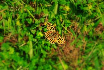 La mariposa parece que está flotando, pero está posada con las alas desplegadas