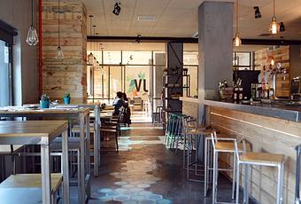 Me encanta la combinación de maderas recicladas, con el hierro, las plantas y la iluminación tan cálida que tiene el local. Esto hace restarle frialdad, ya que siempre identificamos el estilo industrial por algo más bien frío, pero como podréis apreciar, Meraki es de todo menos eso gracias a la inteligente forma de mezclar materiales, consigue que sea un lugar muy acogedor con una atmósfera relajante que invita a pasar buenos ratos.