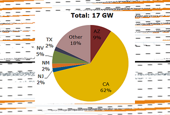 El estado de California mantiene su liderazgo actual en el desarrollo de proyectos en EE.UU, con un 62 % de la capacidad futura a instalar, debido principalmente a sus niveles de irradiación solar y las políticas de apoyo existentes.