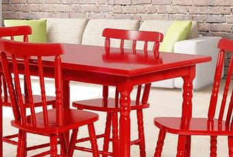 Conjunto De Mesa Em Madeira Maciça Disamóveis Mônaco 140x80cm Com 4 Cadeiras Vermelho