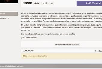 Y ahora sí que sí voy a la noticia del día y es que Mi San Valentín Sangriento también pasa a formar parte de la biblioteca de Lektu.Estuve buscando sitios donde poder subirla para descarga gratuita y Lektu es uno de los más importantes y transitados. El formar parte de ellos es un pequeño regalo que quiero hacer a los autores. Podría dejar la antología ahí, en la entrada que redacté tiempo atrás y no preocuparme más que de intentar captar lectores que nos den su opinión; pero no. Creo que todo el esfuerzo y las ganas se merecen que haga lo que pueda por promoverla, así que ahí lo tenéis.