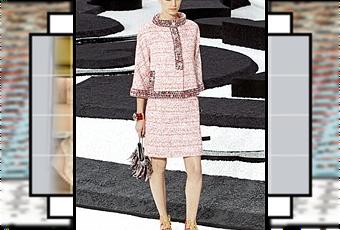 Chanel además de deleitarnos con sus ya conocidos mini vestidos negros a creado diseños siguiendo su clásica línea de trajes de chaqueta con falda en colores vibrantes como e azul cielo o el rosa pastel. El calzado puede ir a juego o no.