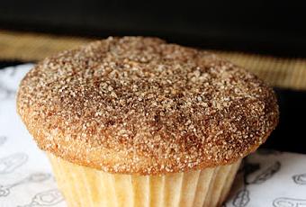 Mientras los muffins se enfrian, preparamos la cobertura. Derretimos la mantequilla en un cuenco. En otro cuenco mezclamos el azúcar con la canela. Cogemos un muffin y sumergimos la parte superior en la mantequilla derretida y seguidamente en la mezcla de azúcar y canela, intentando que esta última se adhiera bien por toda la superficie. Dejamos reposar un poco antes de probarlos ;-)